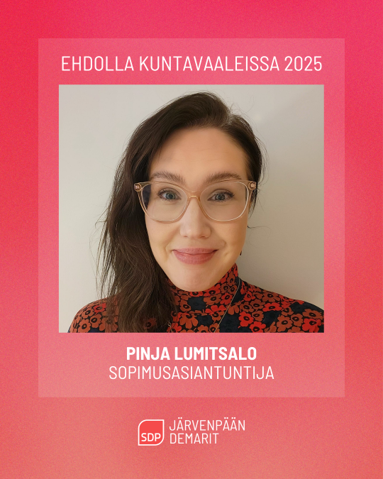 Pinjan esittelyn löydät myös täältä: https://www.sdp.fi/ehdokkaat-kuntavaalit/lumitsalo-pinja/